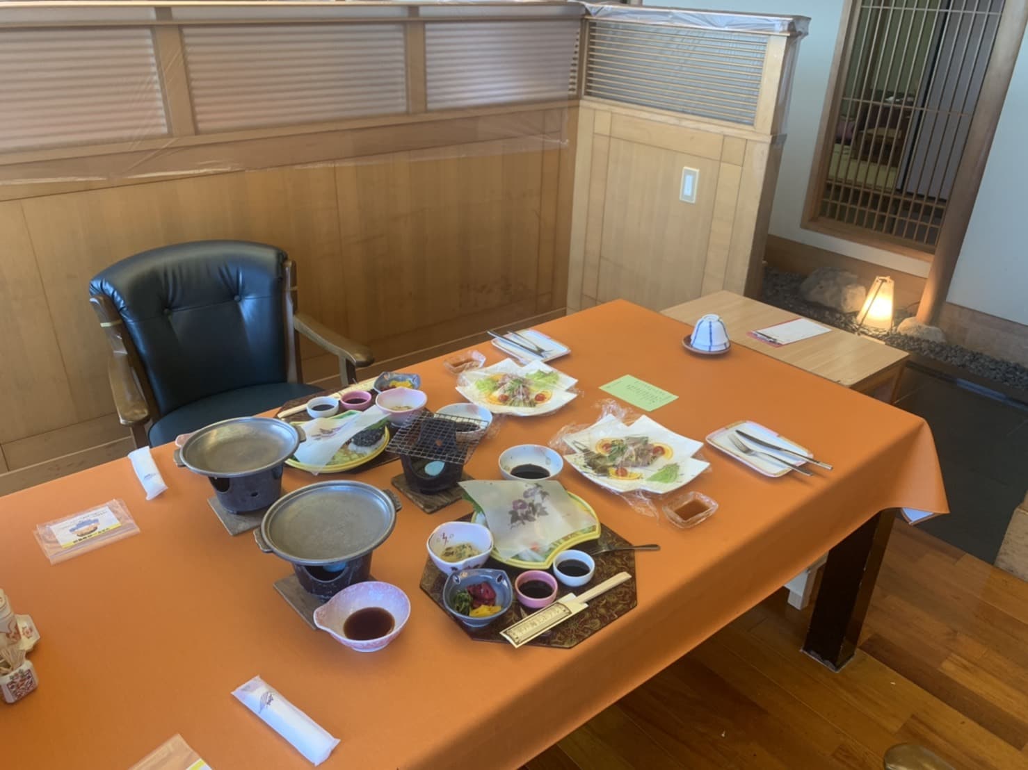 パーテーションで仕切られた食事処、個室